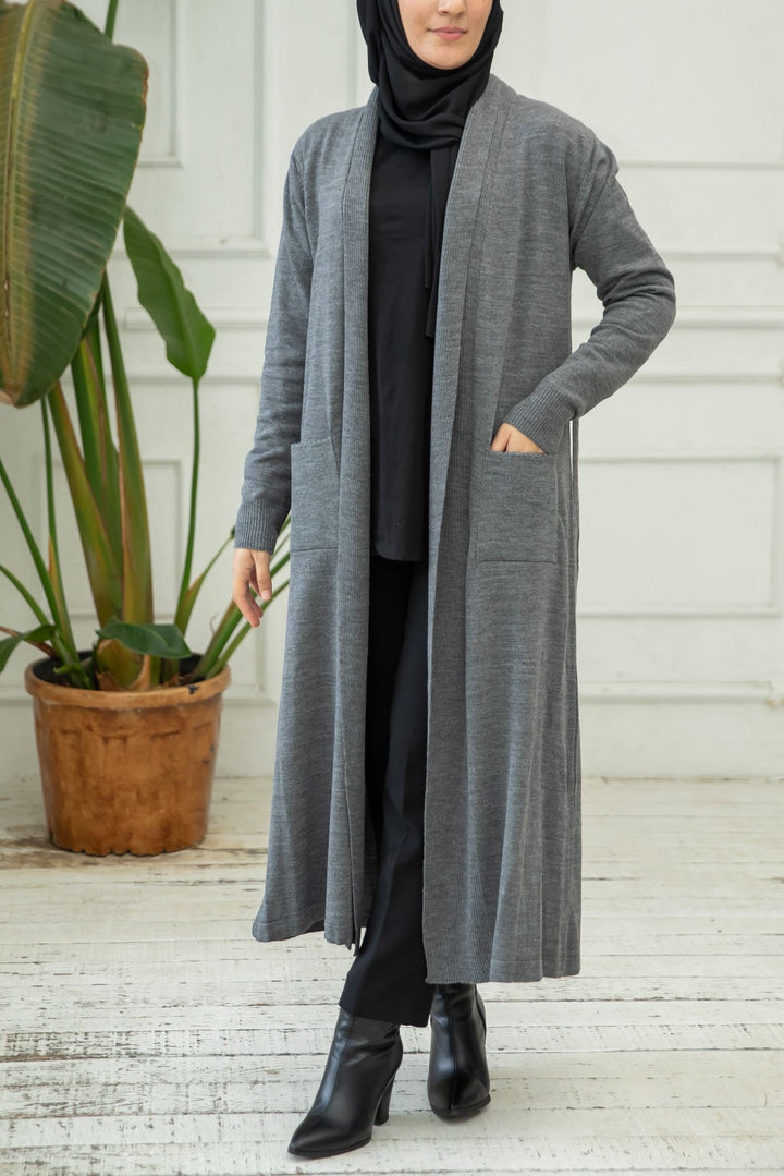 بتصميم طويل منسدل مع ياقة على شكل V وأزرار أمامية تضيف لمسة من الفخامة.