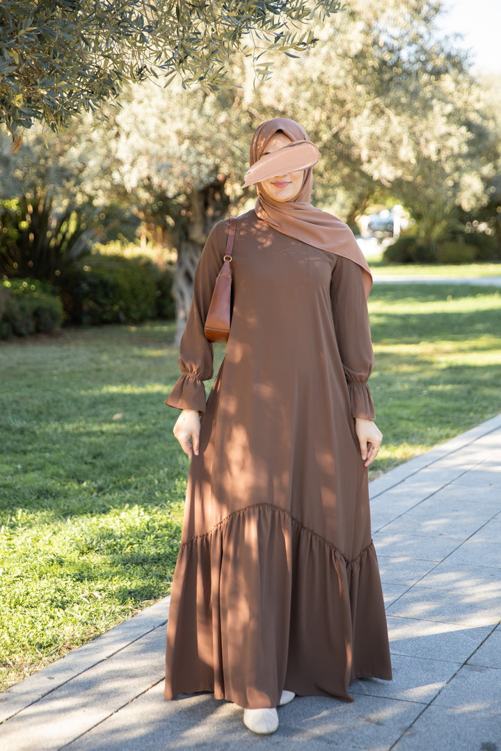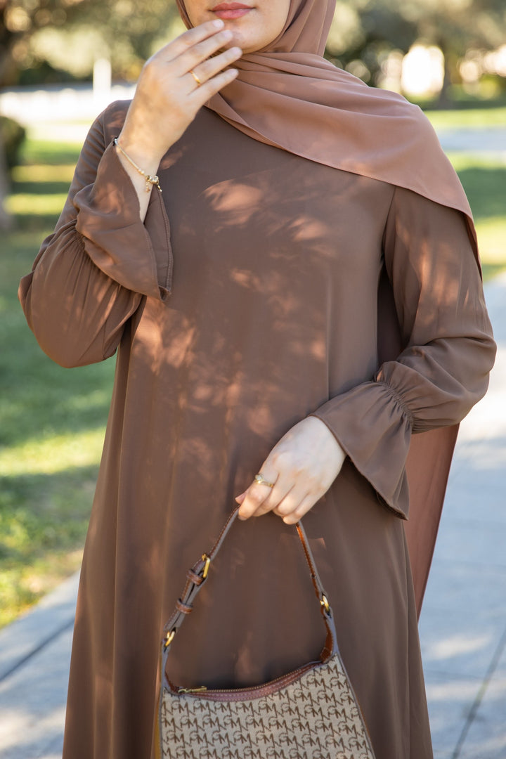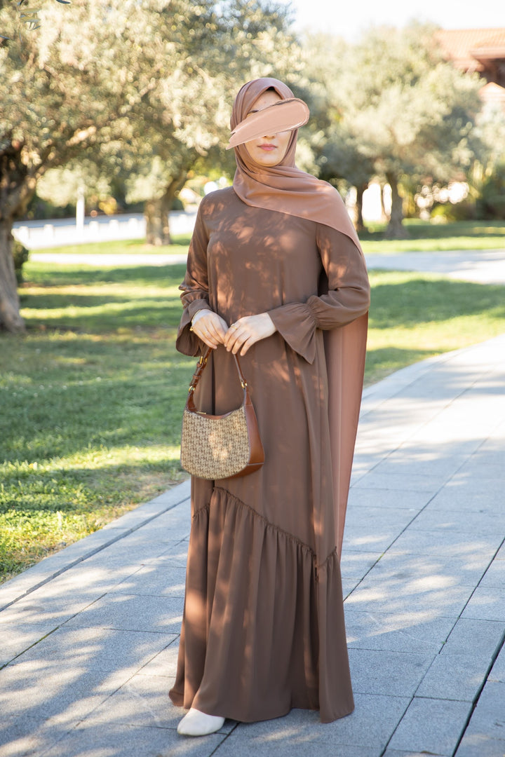 إطلالة فخمة بتصميم بسيط يجمع بين النعومة والهيبة، مثالية لكل سيدة أنيقة تبحث عن التميز والراحة.
