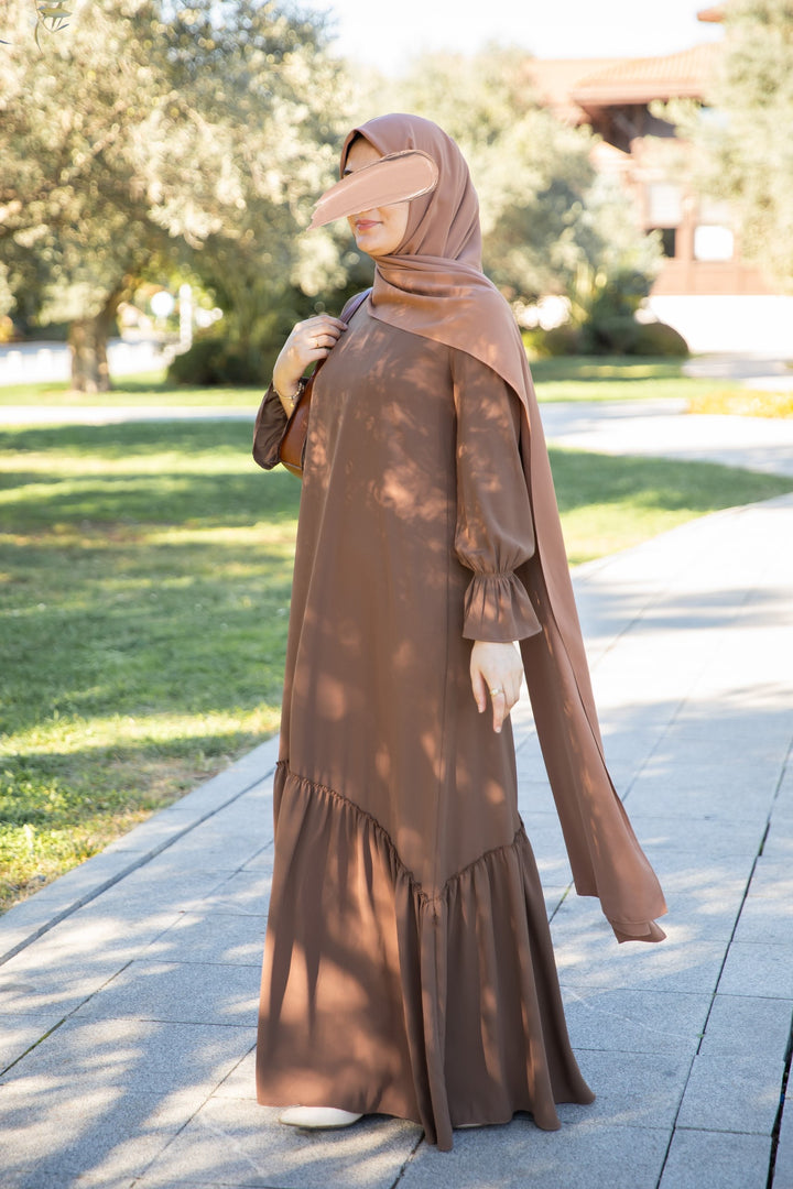 خمار ثلاثة طبقات قصير✨- لون كابتشينو غامق