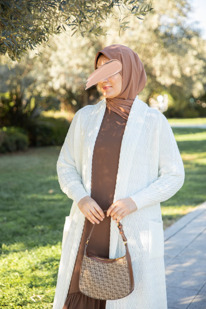 خمار ثلاثة طبقات قصير✨- لون كابتشينو غامق