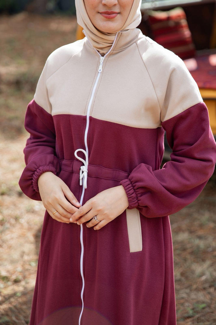 قَصّته ناعمة بانسيابية مريحة، مزوّد بسحّاب أمامي كامل لسهولة اللبس، مع ربطة خصر قابلة للتعديل لإبراز القوام بأناقة.