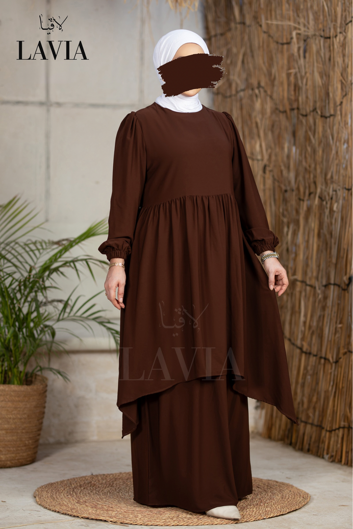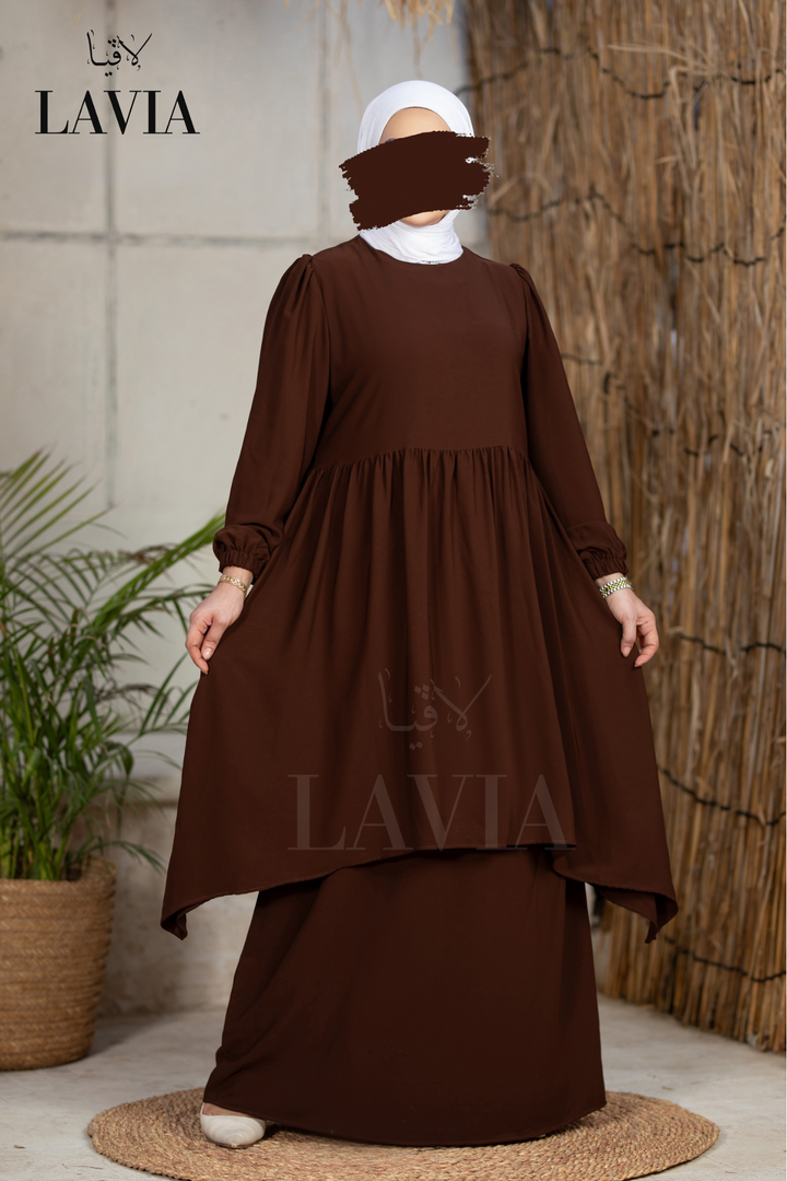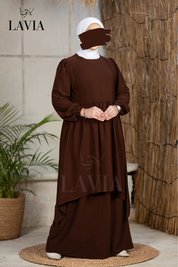 خمار ثلاثة طبقات قصير✨- لون كابتشينو غامق