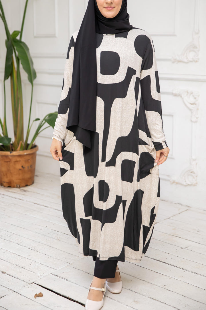 • تونيكا واسعة بتصميم عصري عملي، مثالية للإطلالات اليومية.