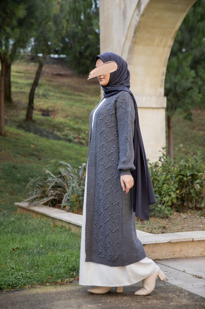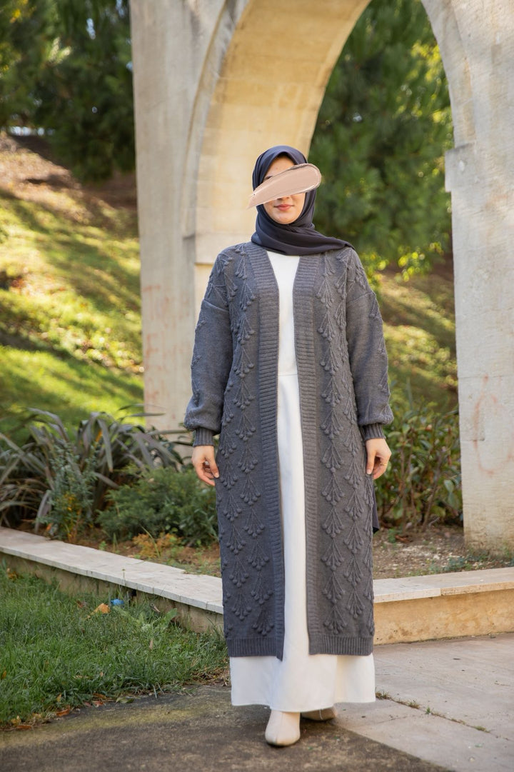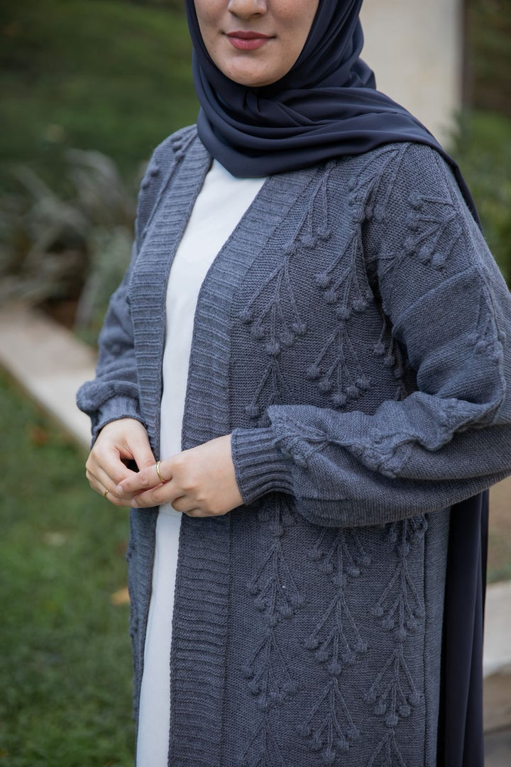 تفاصيل دقيقة في الحياكة تبرز جمال الصوف وجودته، مع لمسات أنثوية تضيف لإطلالتك تميّزًا لا يُقاوم. يمكن تنسيقه بسهولة مع العبايات أو الفساتين  لإطلالة متكاملة في كل مناسبة