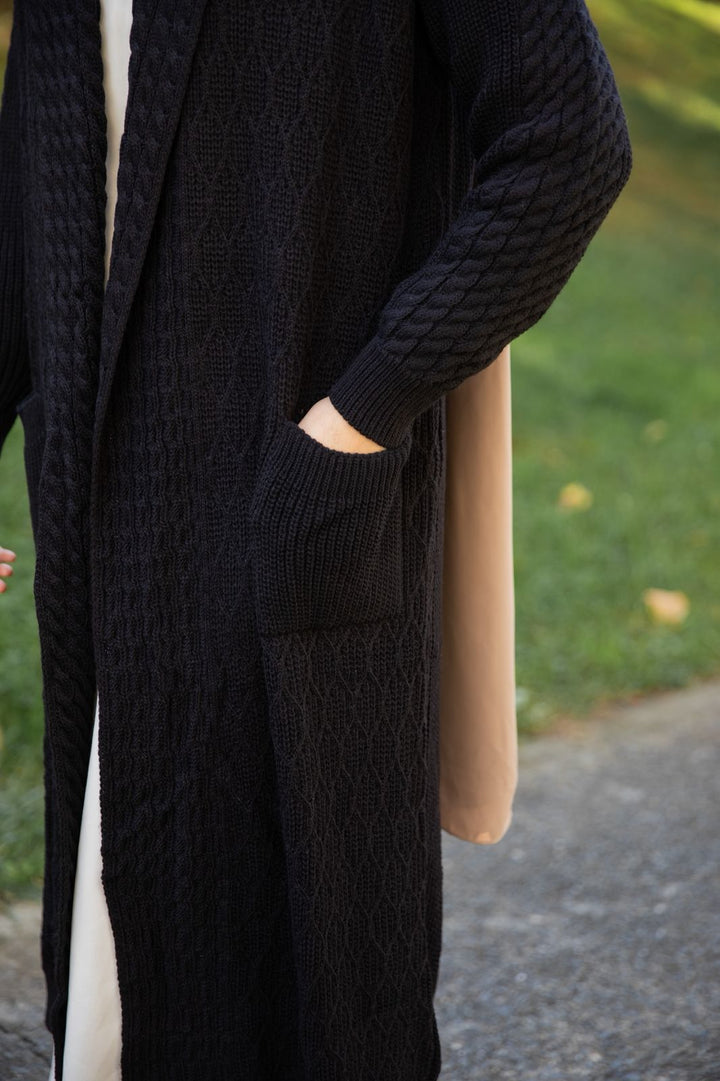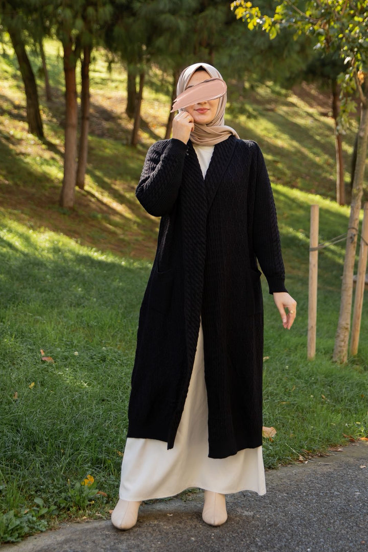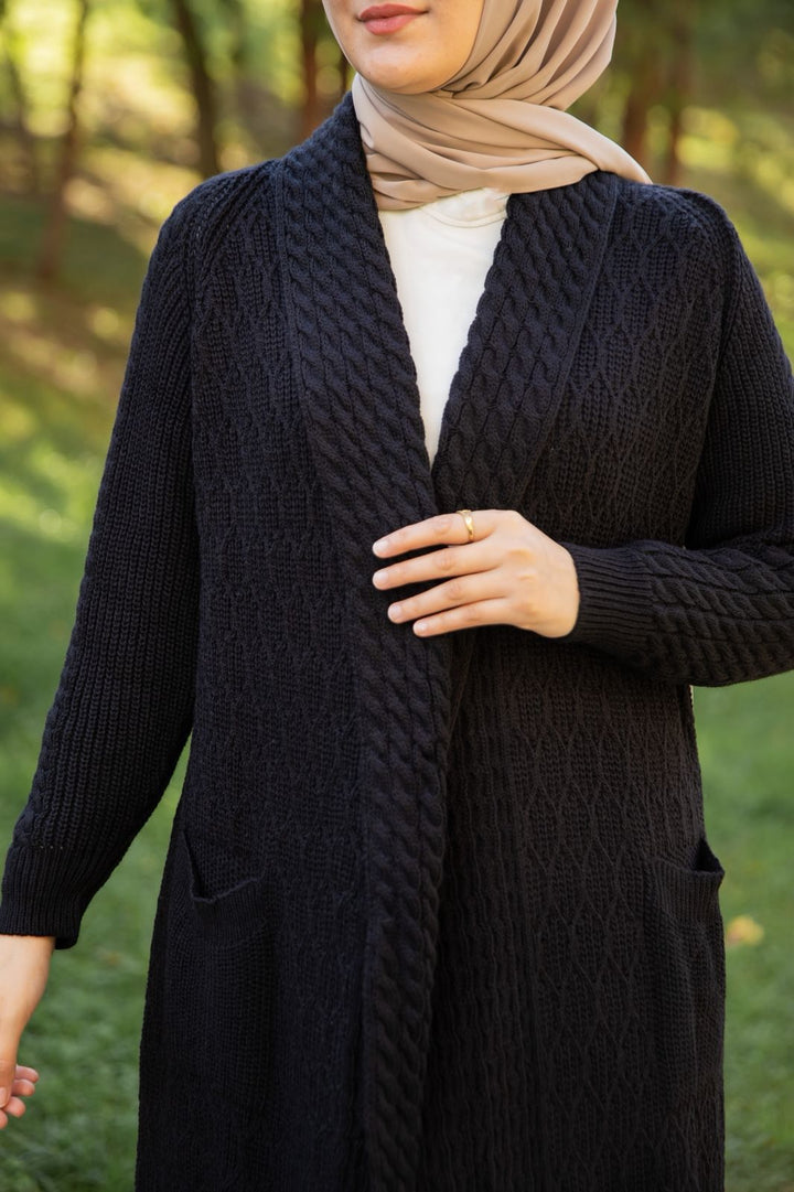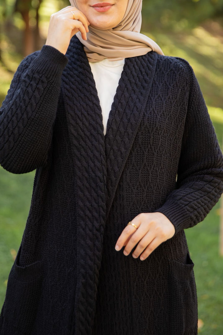 تفاصيل دقيقة في الحياكة تبرز جمال الصوف وجودته، مع لمسات أنثوية تضيف لإطلالتك تميّزًا لا يُقاوم. يمكن تنسيقه بسهولة مع العبايات أو الفساتين  لإطلالة متكاملة في كل مناسبة