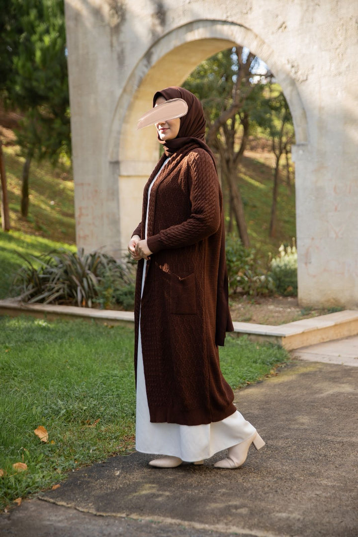تفاصيل دقيقة في الحياكة تبرز جمال الصوف وجودته، مع لمسات أنثوية تضيف لإطلالتك تميّزًا لا يُقاوم. يمكن تنسيقه بسهولة مع العبايات أو الفساتين  لإطلالة متكاملة في كل مناسبة