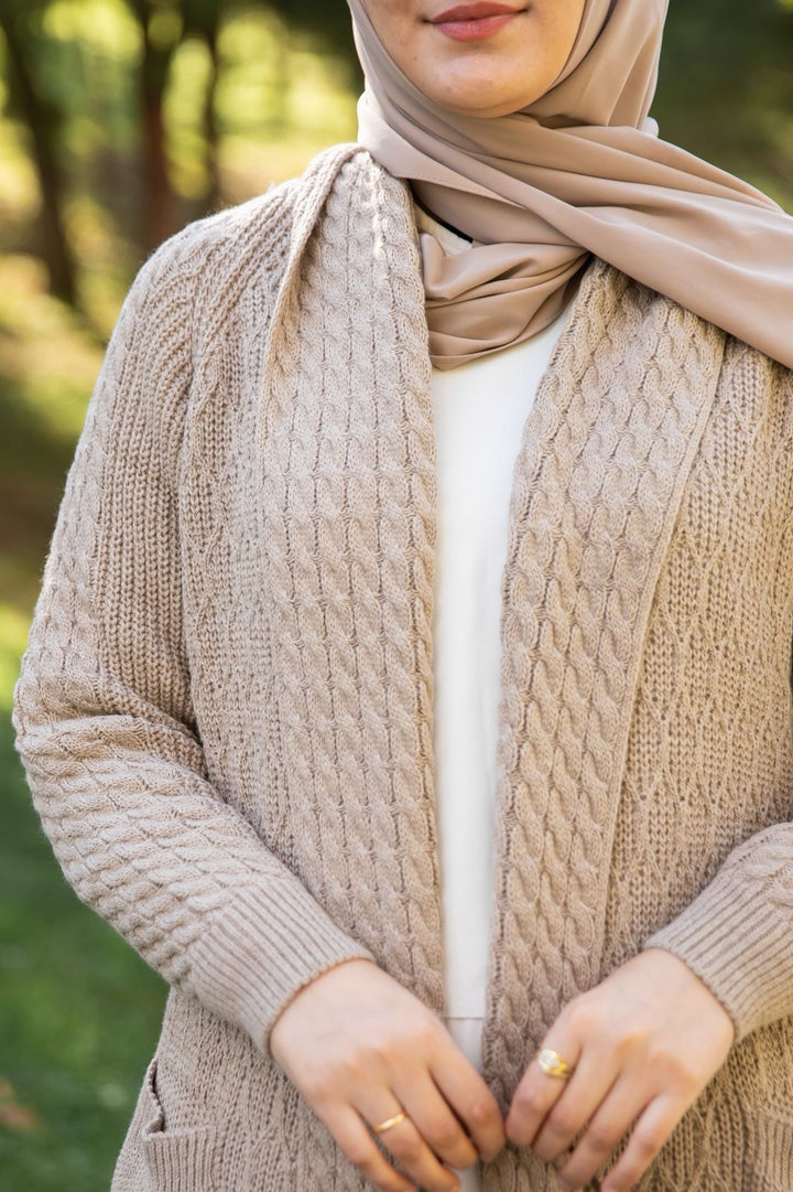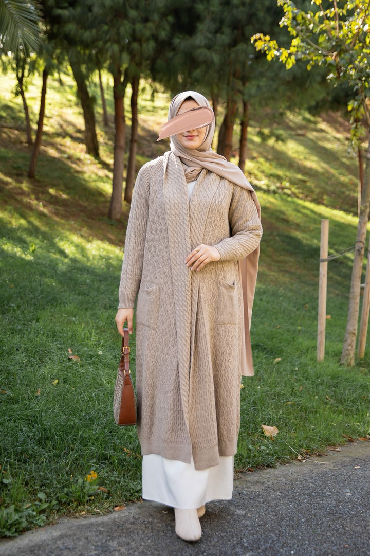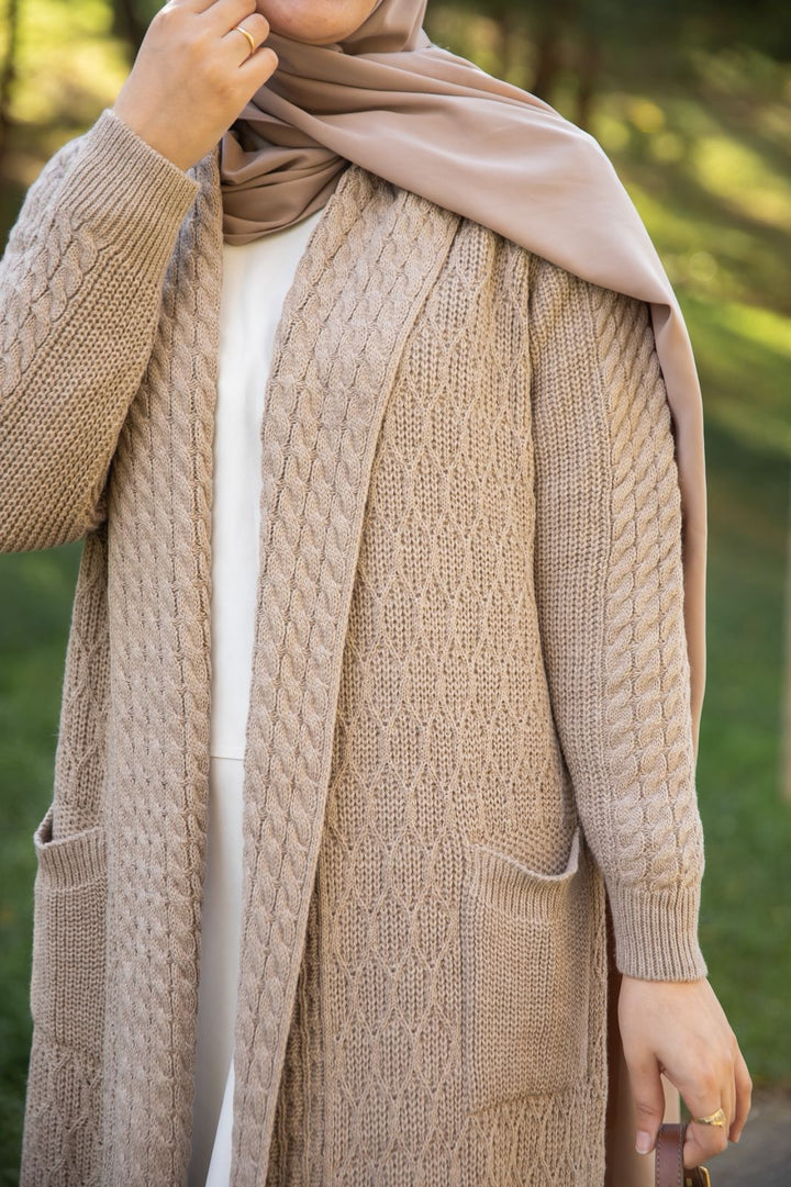 تفاصيل دقيقة في الحياكة تبرز جمال الصوف وجودته، مع لمسات أنثوية تضيف لإطلالتك تميّزًا لا يُقاوم. يمكن تنسيقه بسهولة مع العبايات أو الفساتين  لإطلالة متكاملة في كل مناسبة