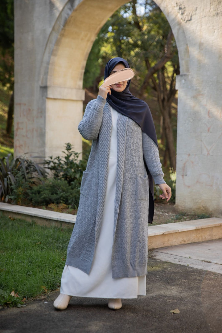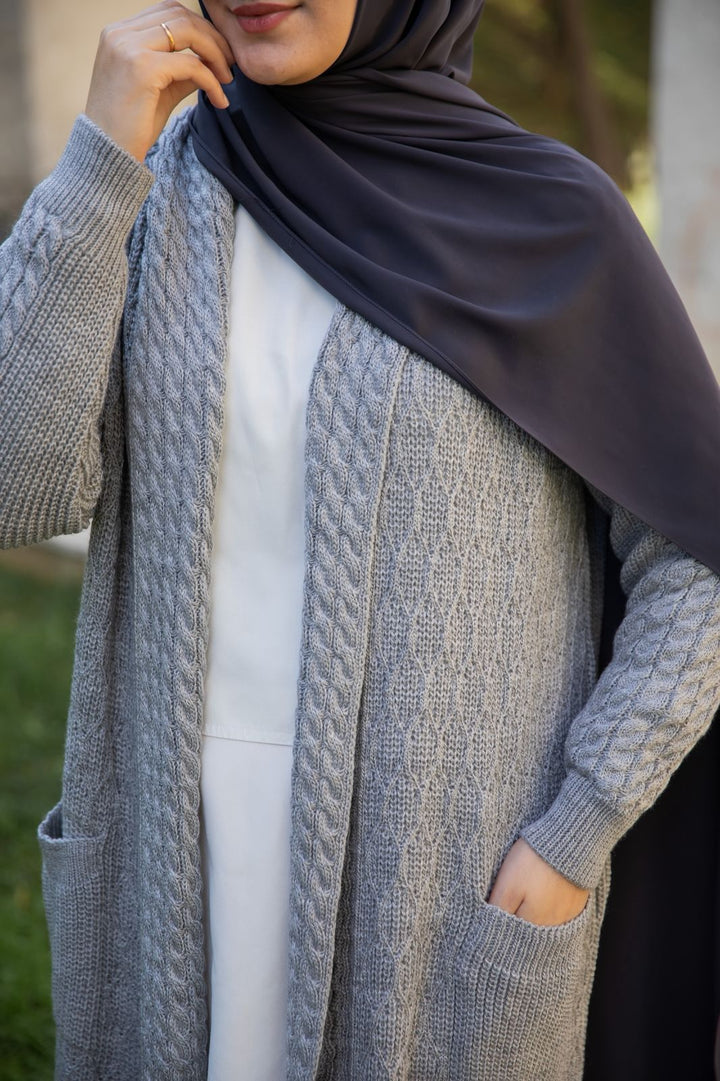 تفاصيل دقيقة في الحياكة تبرز جمال الصوف وجودته، مع لمسات أنثوية تضيف لإطلالتك تميّزًا لا يُقاوم. يمكن تنسيقه بسهولة مع العبايات أو الفساتين  لإطلالة متكاملة في كل مناسبة
