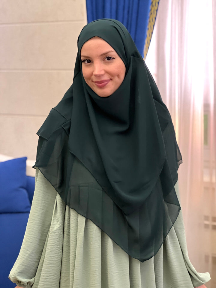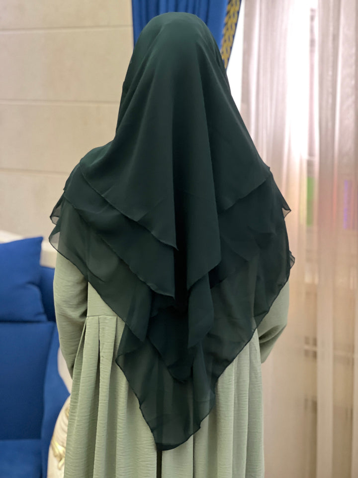 خمار ثلاثة طبقات قصير✨- لون اخضر زمردي