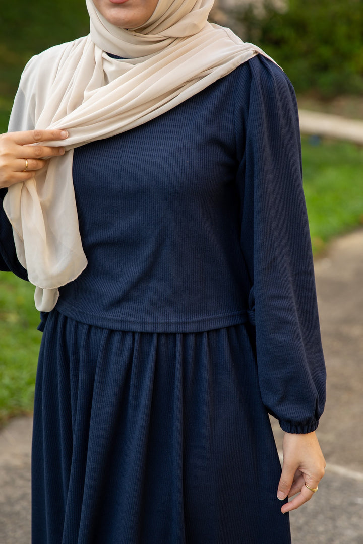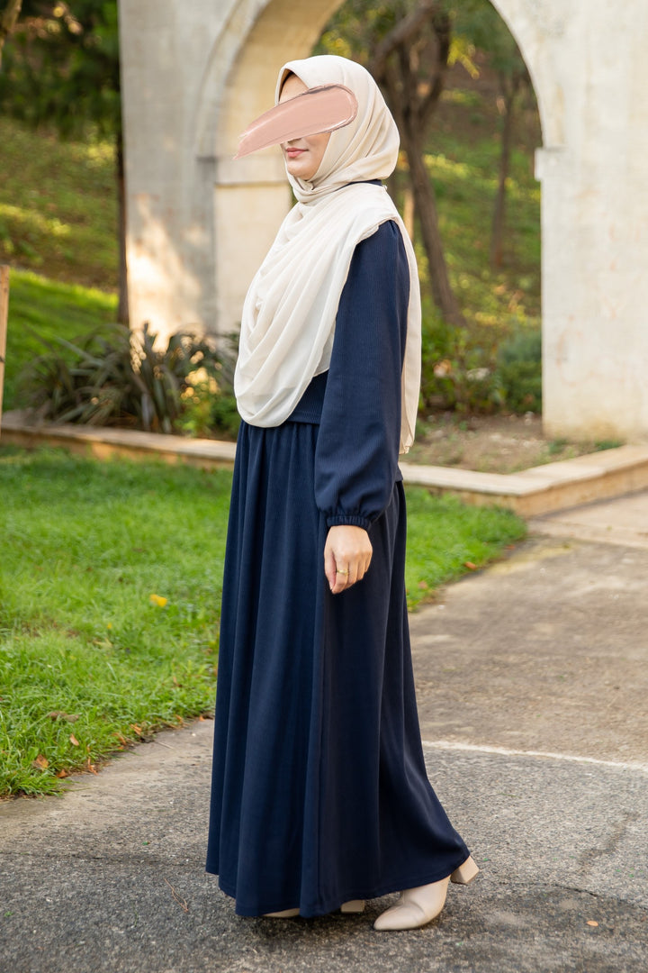 تنورة واسعة بانسيابية أنثوية تمنح حركة مريحة ومظهرًا متوازنًا.