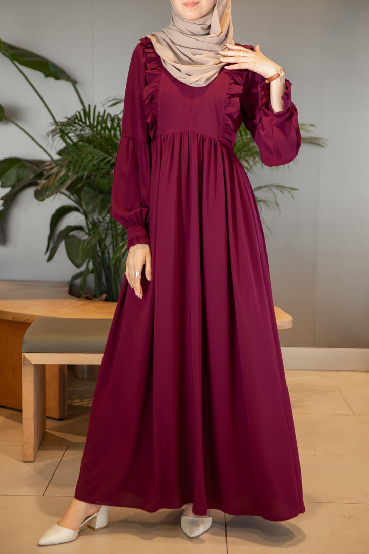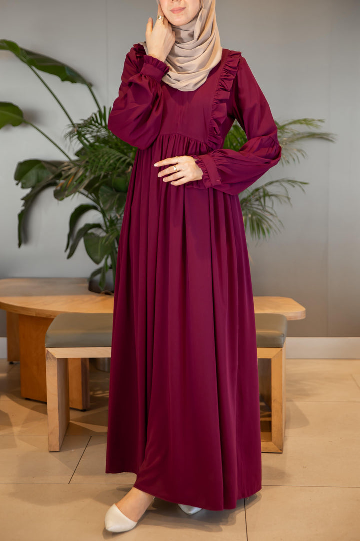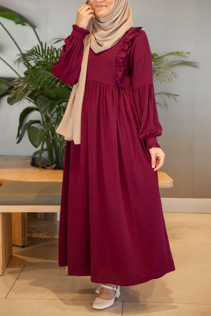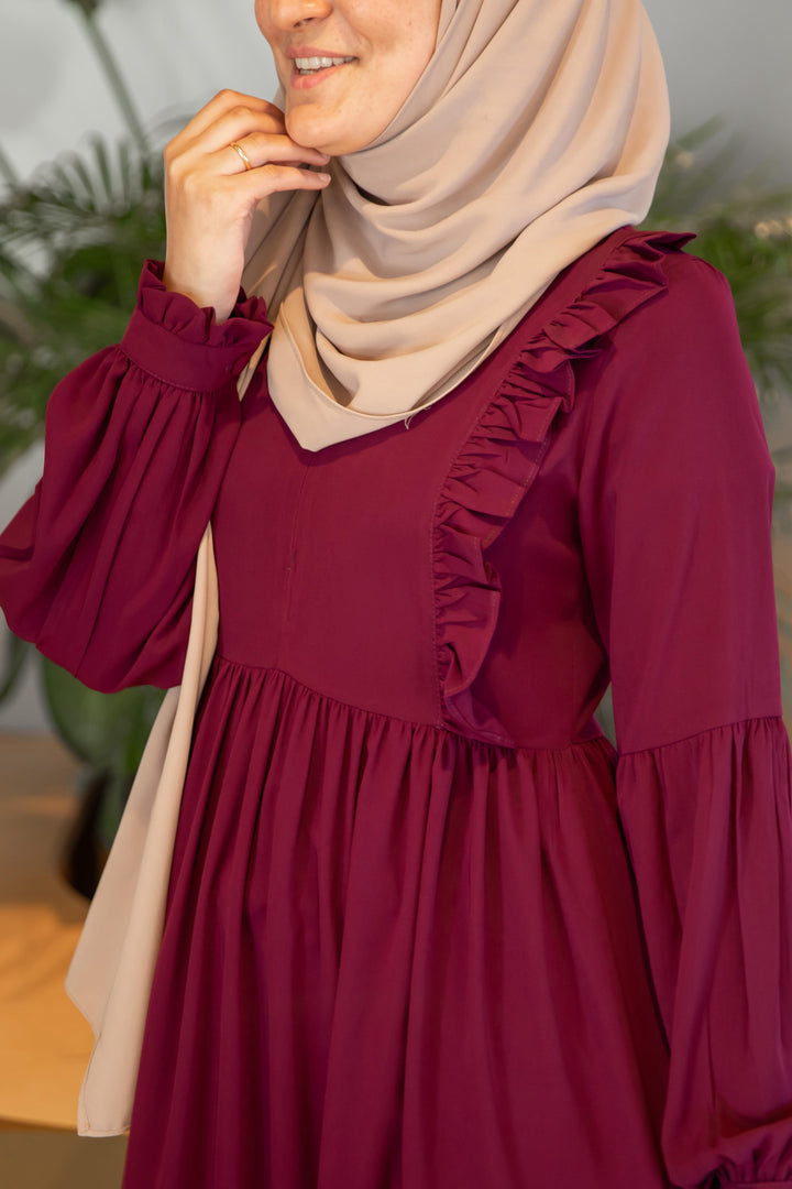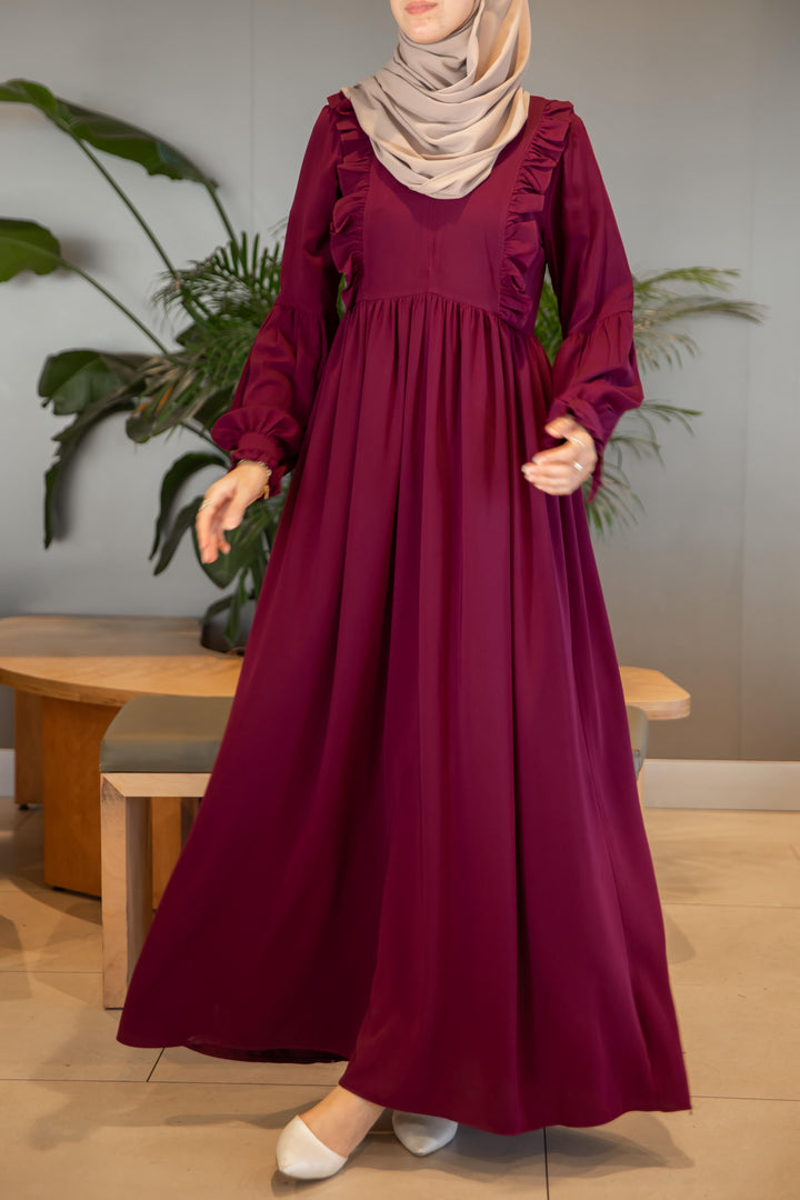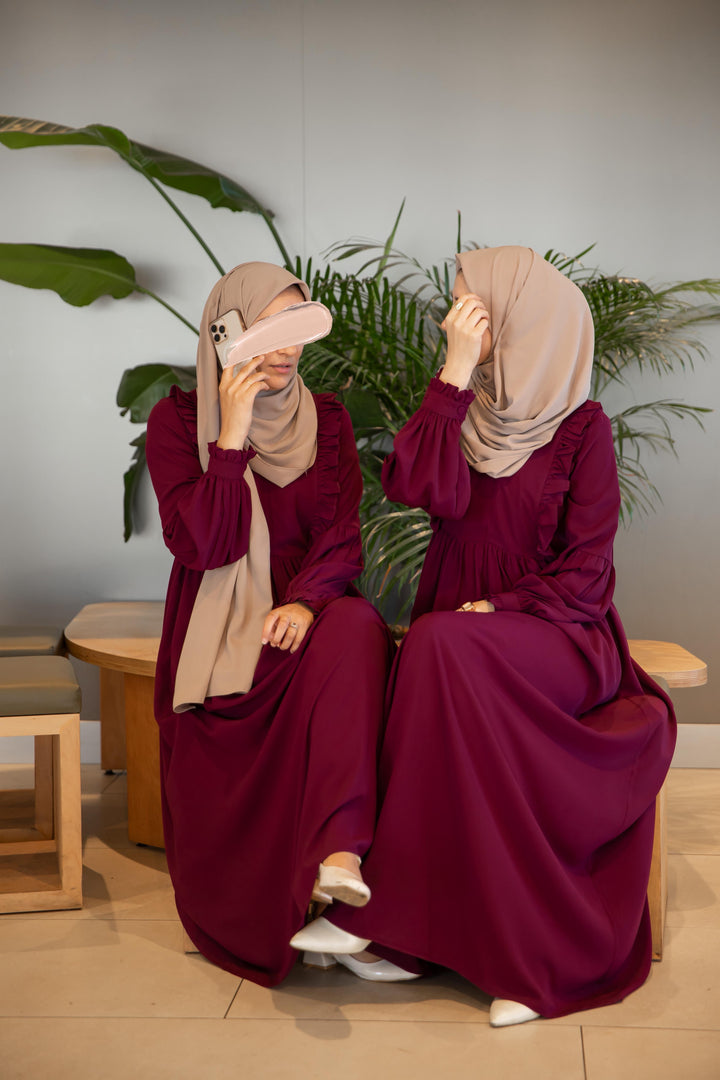 فستان عائشة 🌸 - لون توتي طول عادي