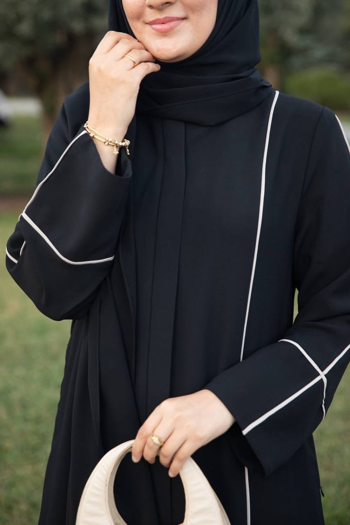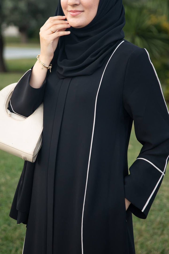 القماش: مصنوع من قماش عبايات راقي جدًا، انسيابي وناعم، يمنح راحة وأناقة في كل وقت.