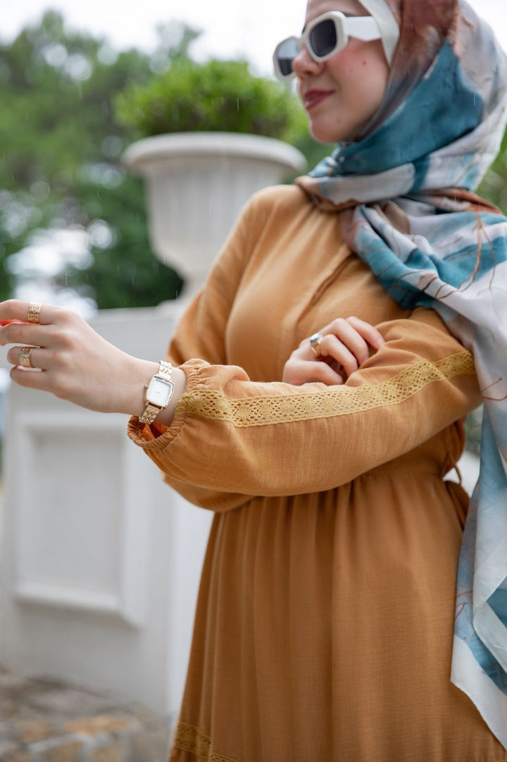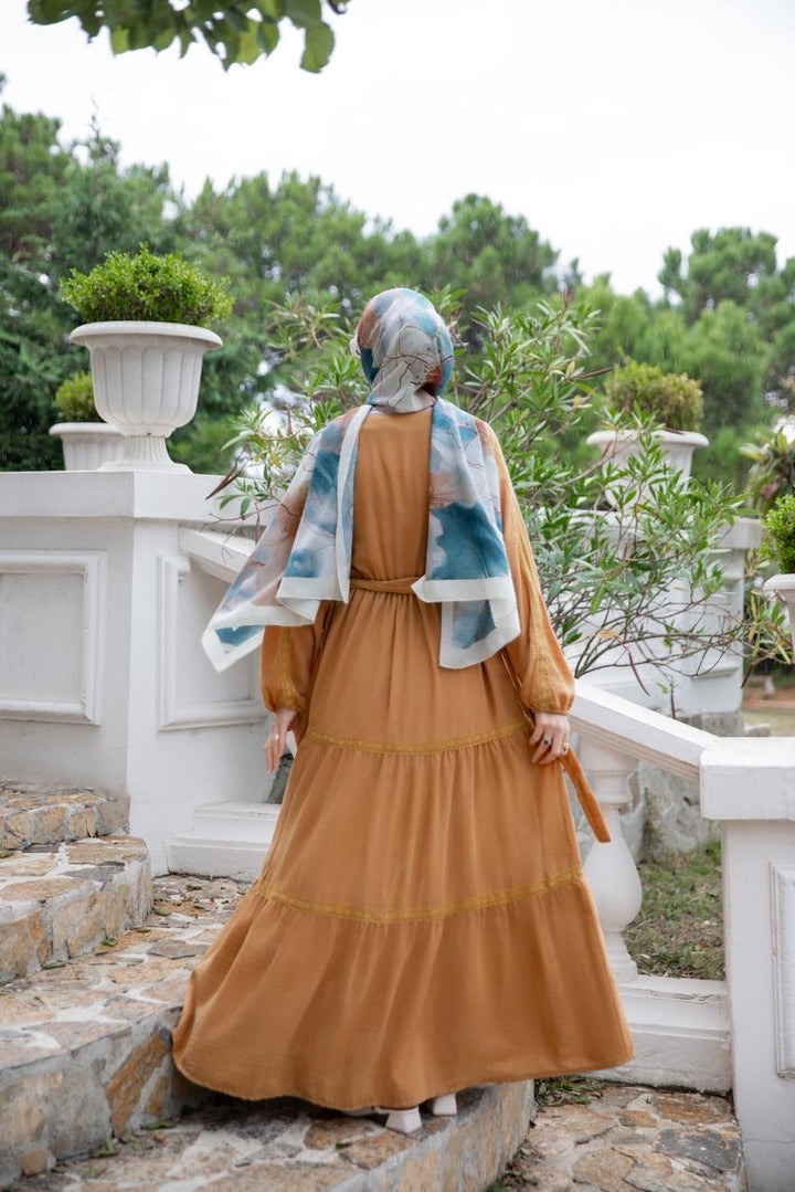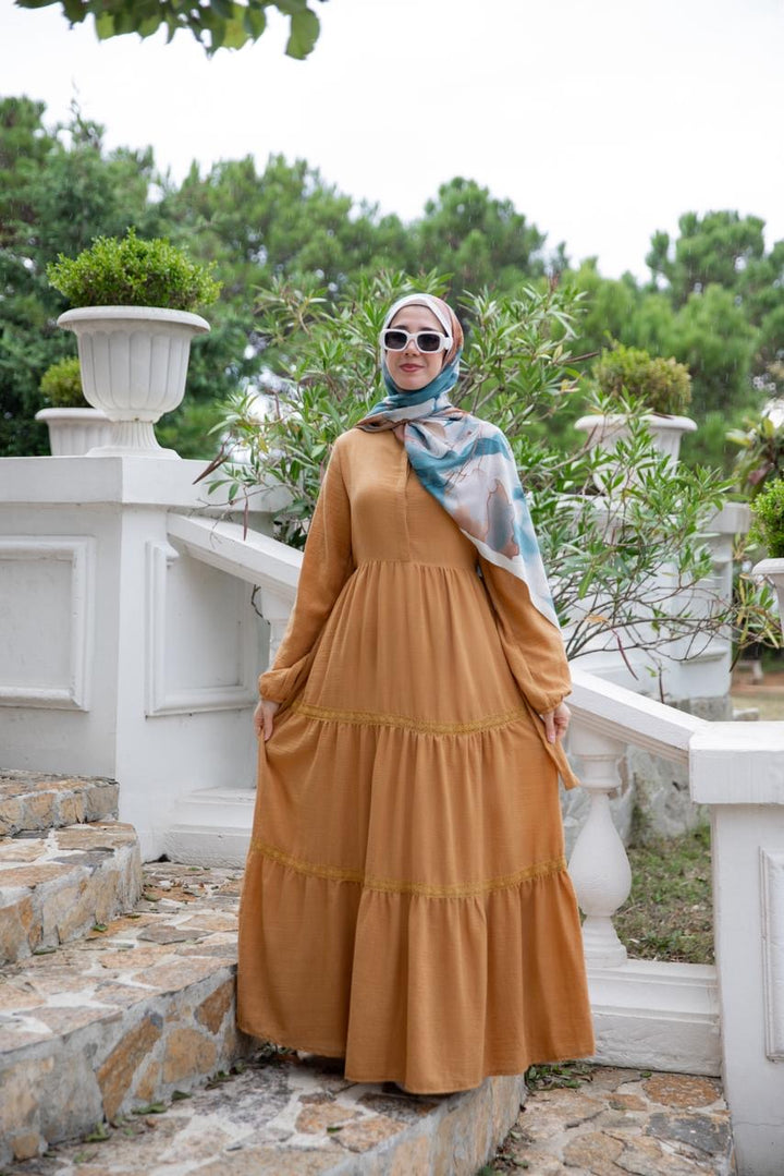 فستان يجسد الأنوثة والدفء الخريفي بتصميم بسيط وراقي 🍂