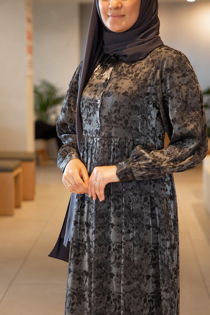 القصة الواسعة المتدفقة تمنح حضورًا راقيًا وراحة عملية في الوقت ذاته، مع تفاصيل دقيقة تزيد من رونق الإطلالة.