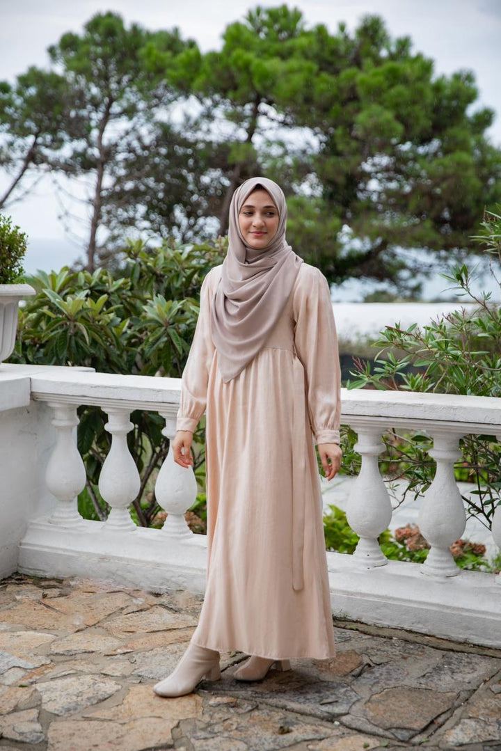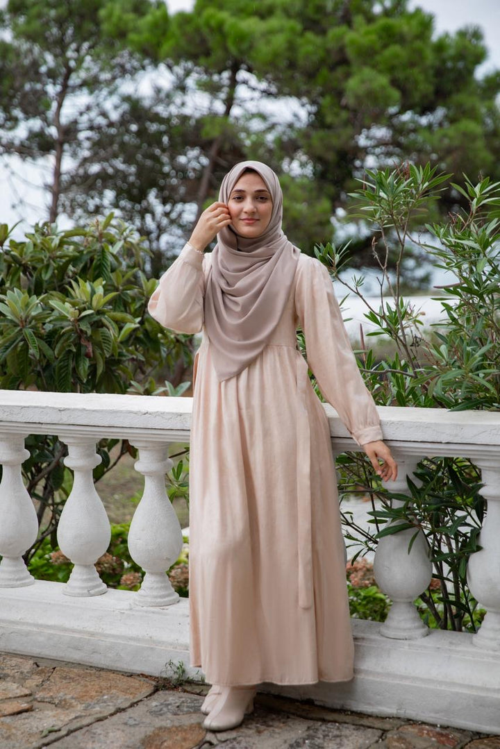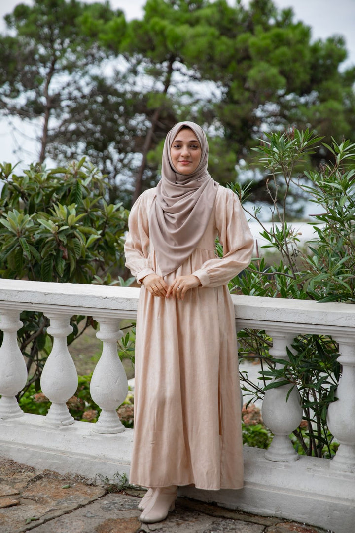 القصة الواسعة المتدفقة تمنح حضورًا راقيًا وراحة عملية في الوقت ذاته، مع تفاصيل دقيقة تزيد من رونق الإطلالة.