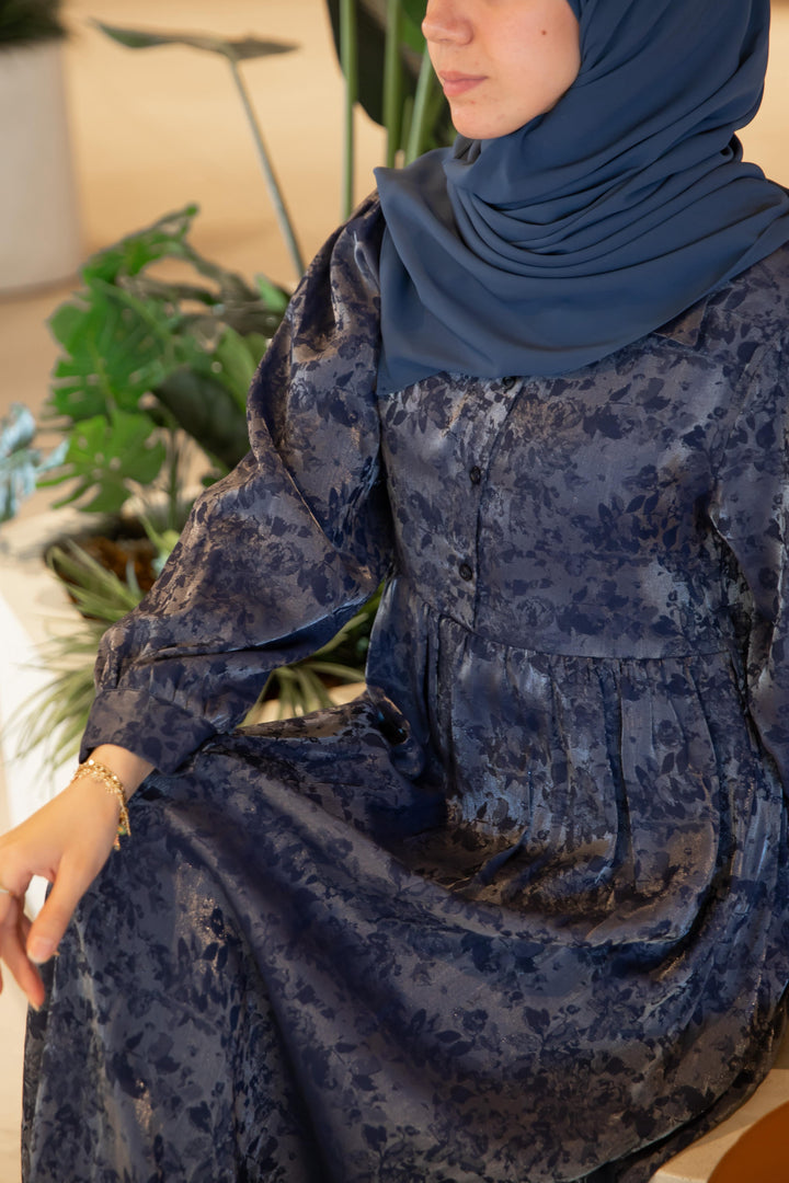 القصة الواسعة المتدفقة تمنح حضورًا راقيًا وراحة عملية في الوقت ذاته، مع تفاصيل دقيقة تزيد من رونق الإطلالة.