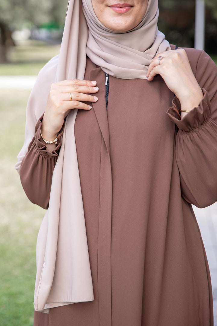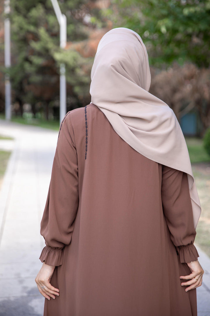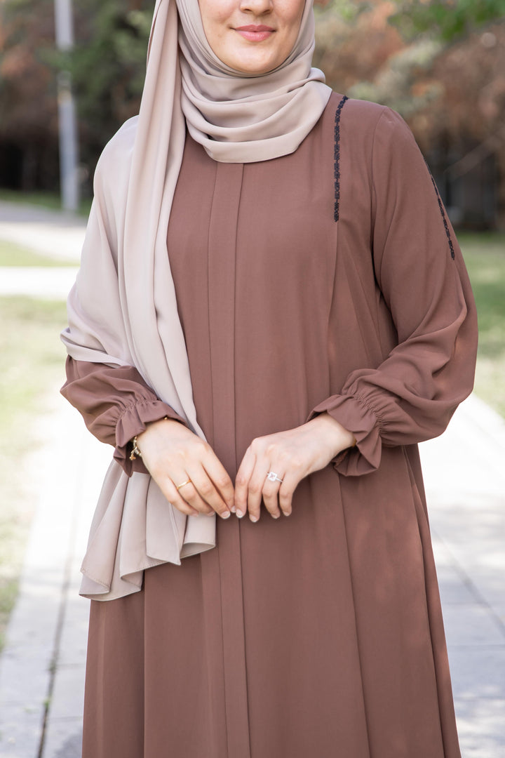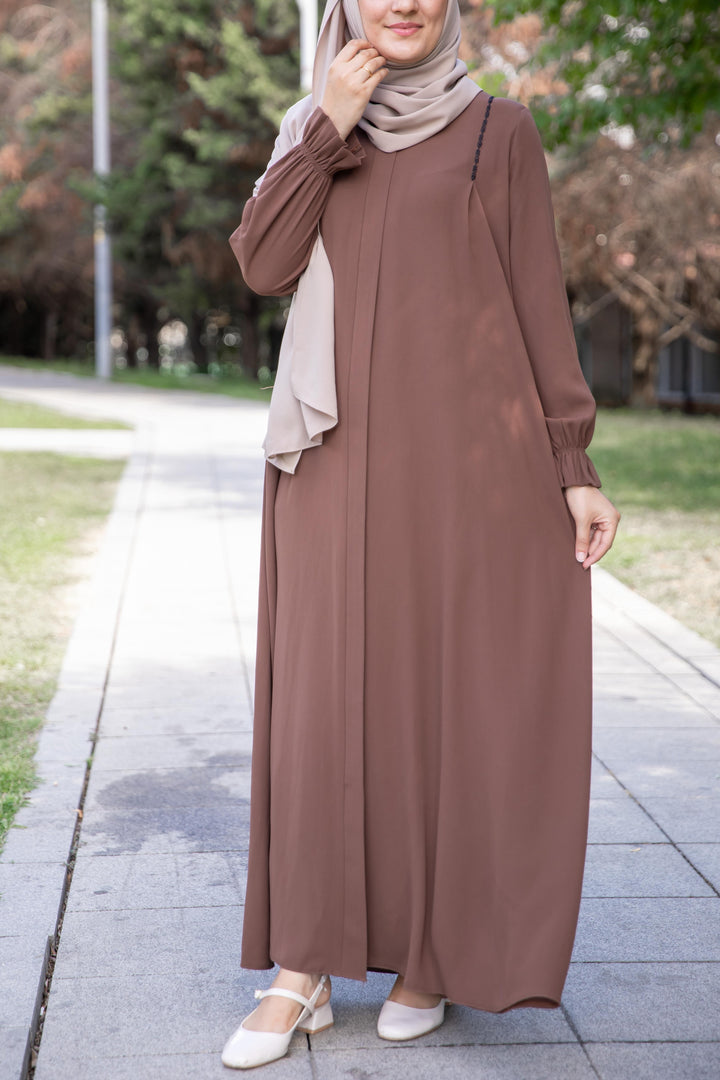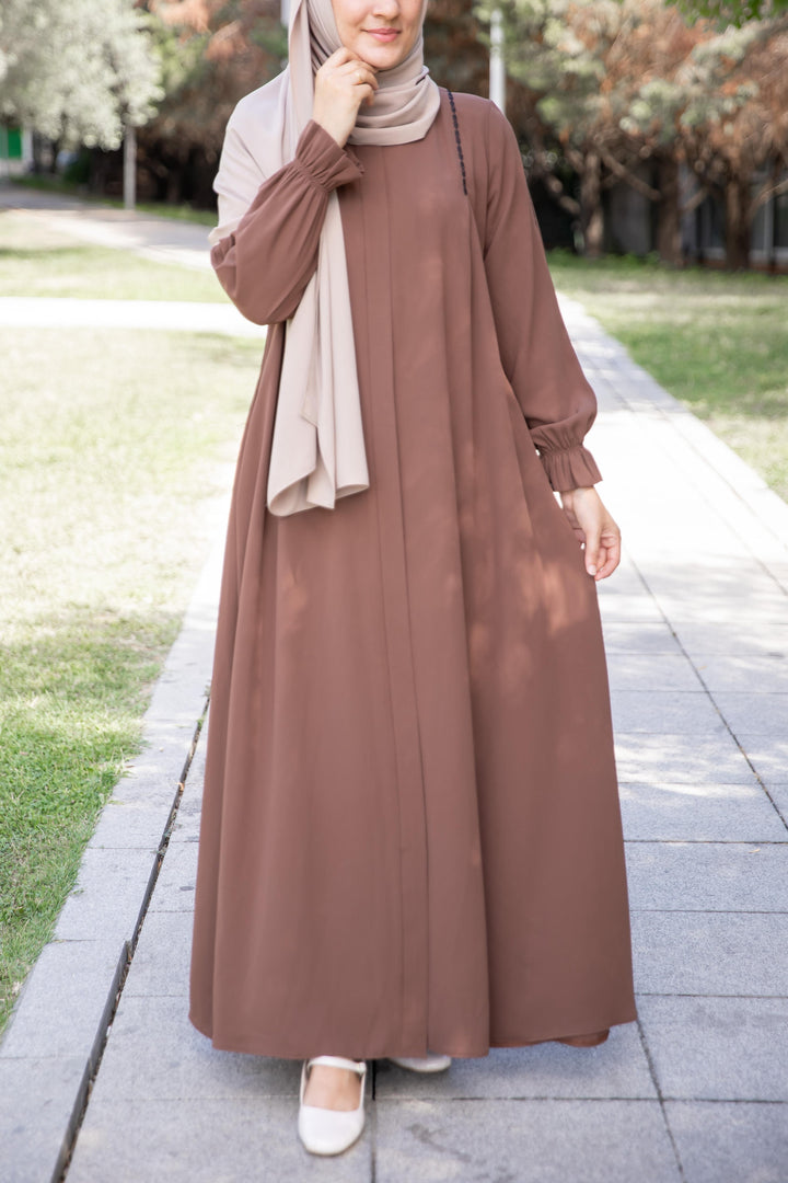 فستان شذى لون بني (خدي مقاس اكبر من مقاسك) (تصفيه لا تبديل ولا ترجيع)
