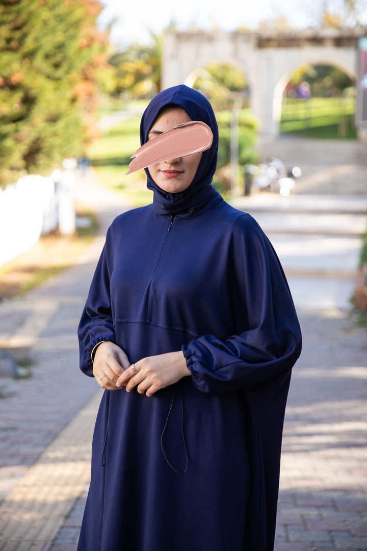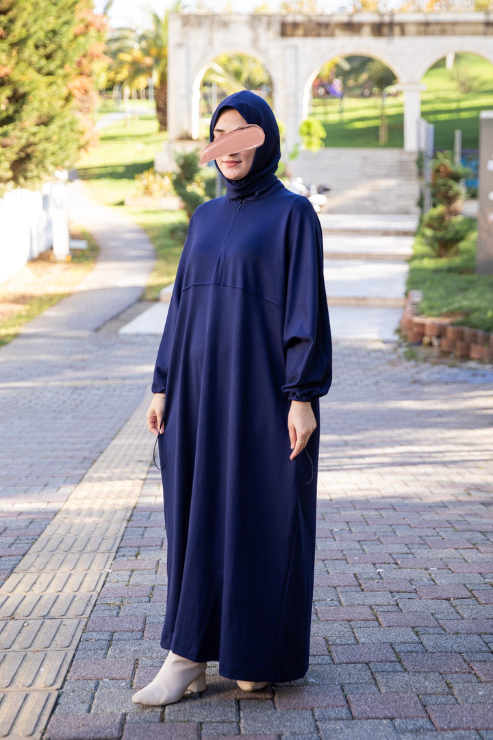 فستان واسع بتصميم عملي ومحتشم يجمع بين الراحة والأناقة، مع شال مدمج يمنحك إطلالة متكاملة دون الحاجة لتنسيق إضافي.