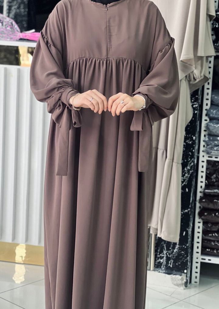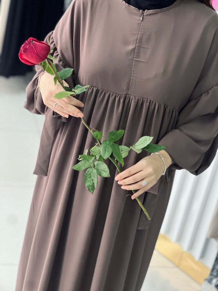 فستان شذى لون بني (خدي مقاس اكبر من مقاسك) (تصفيه لا تبديل ولا ترجيع)