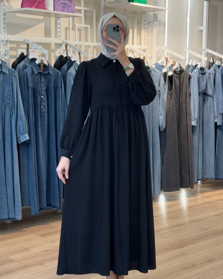 مصنوع من قماش الكريب الناعم، مع أزرار أمامية مخفية تحافظ على اللمسة الانيقة 🌸