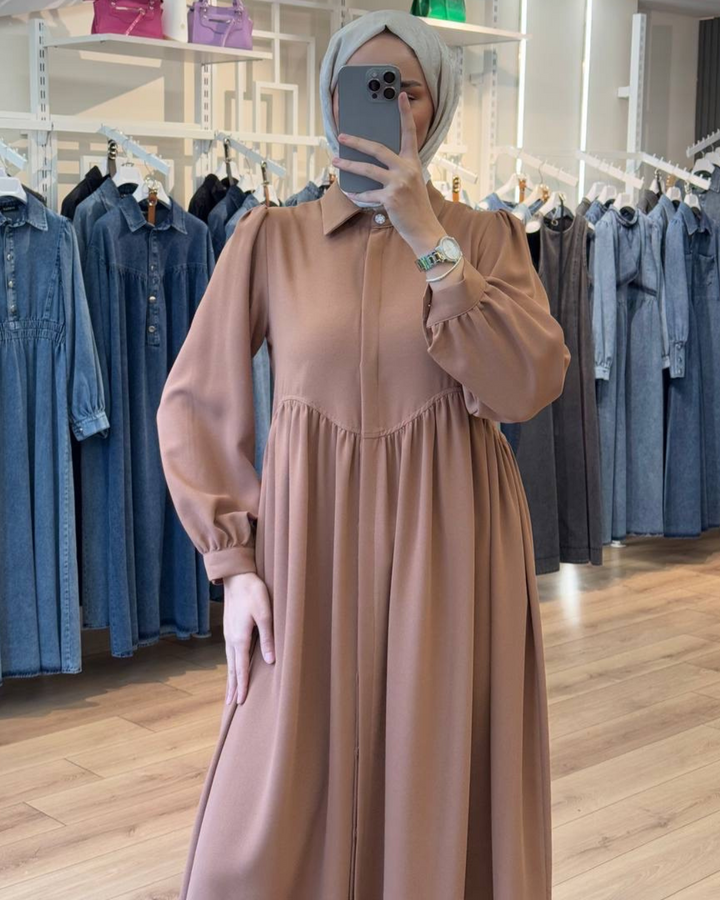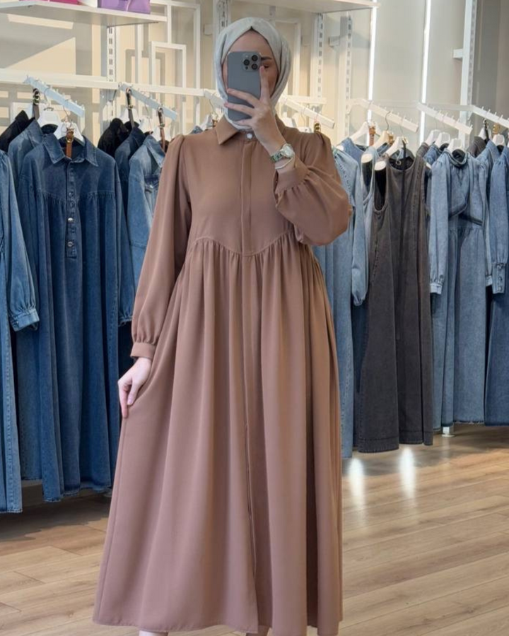 مصنوع من قماش الكريب الناعم، مع أزرار أمامية مخفية تحافظ على اللمسة الانيقة 🌸