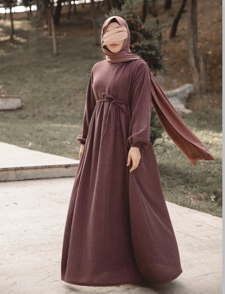 تصميم مثالي للمحجبات، يمنح إطلالة راقية ومحتشمة تناسب جميع المناسبات الشتوية.