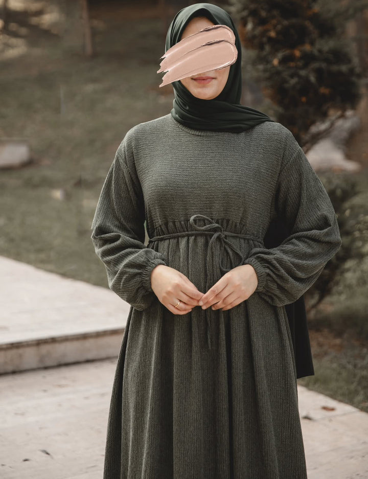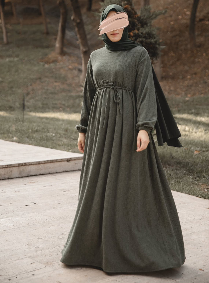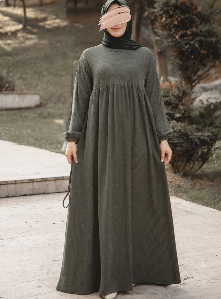 تصميم مثالي للمحجبات، يمنح إطلالة راقية ومحتشمة تناسب جميع المناسبات الشتوية.