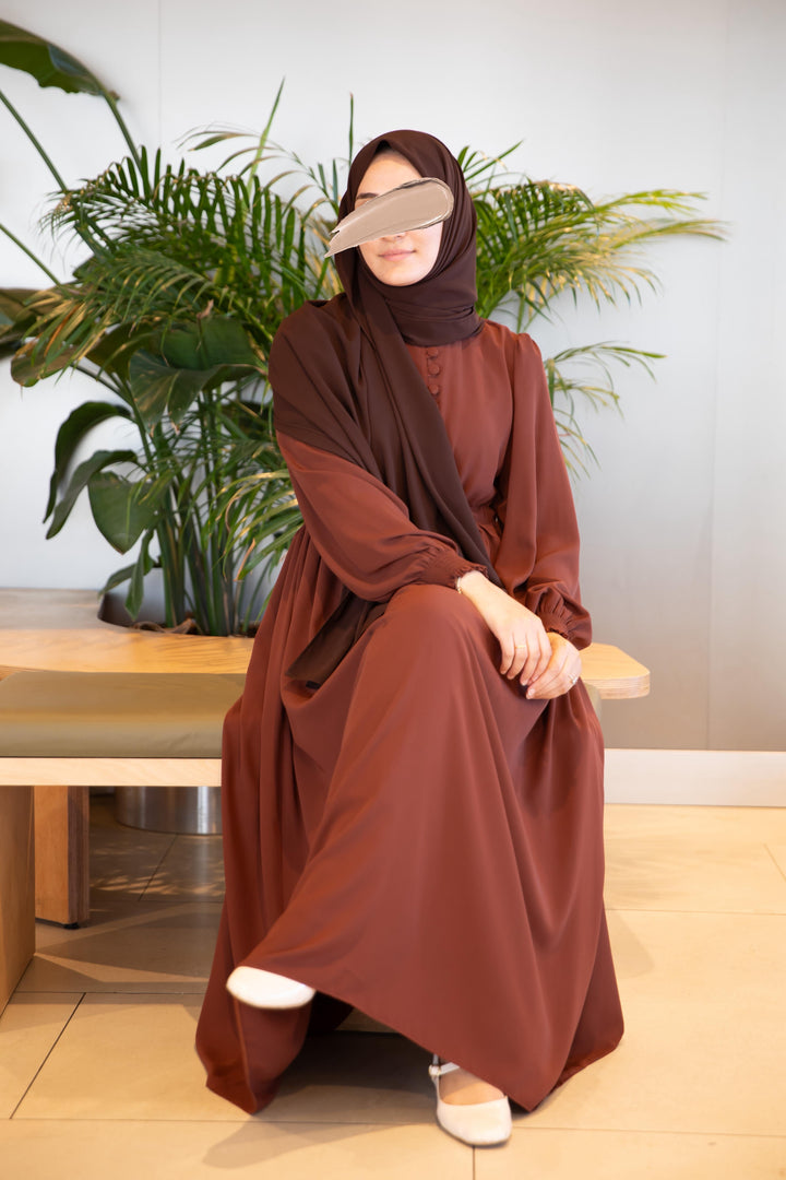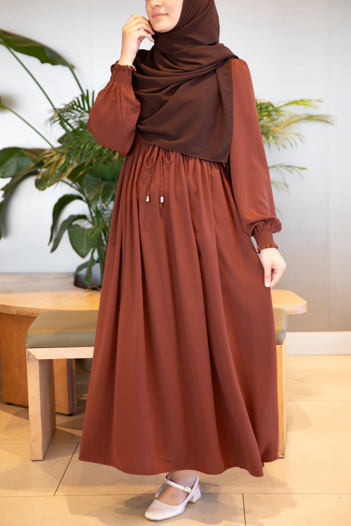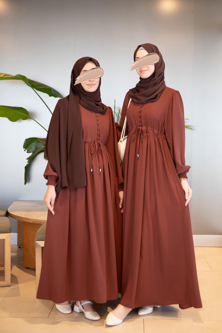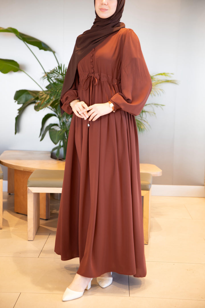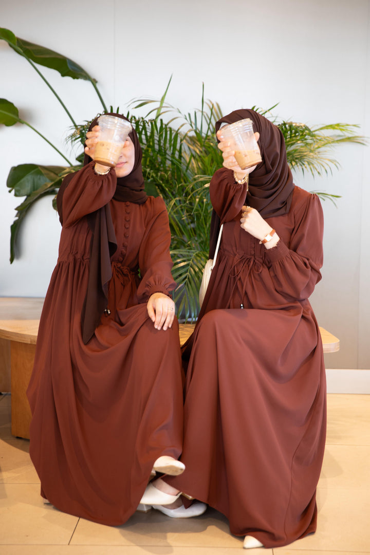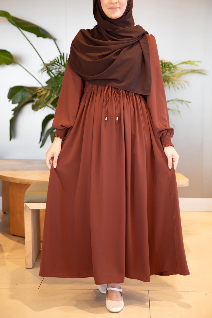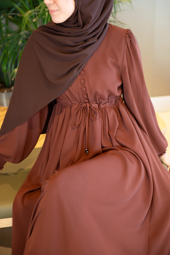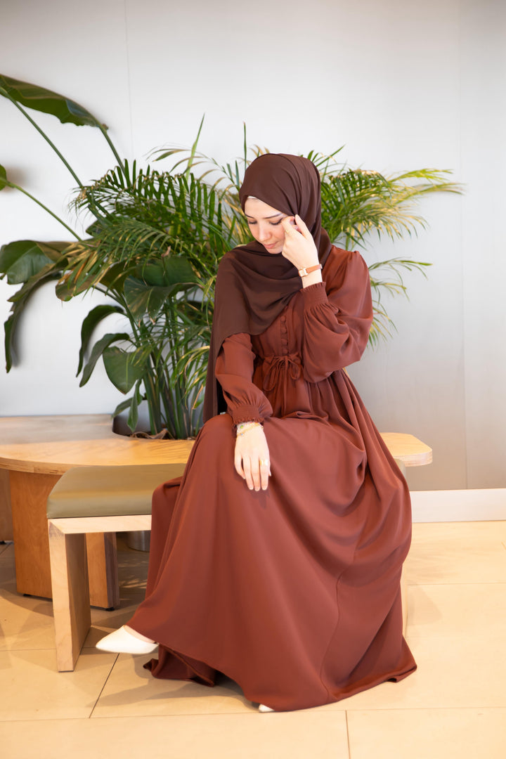 فستان شذى لون بني (خدي مقاس اكبر من مقاسك) (تصفيه لا تبديل ولا ترجيع)