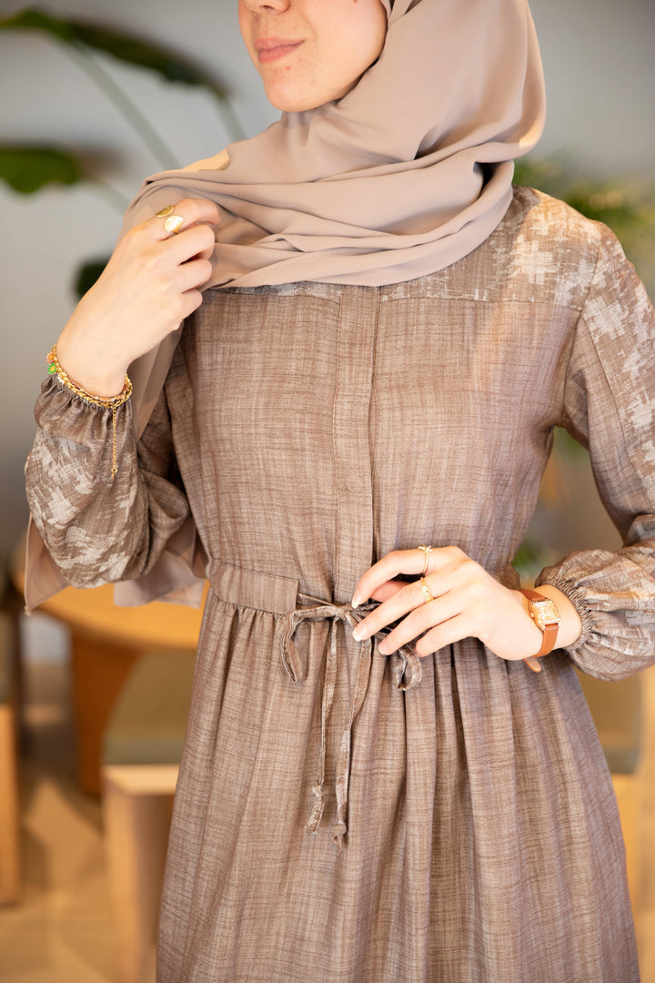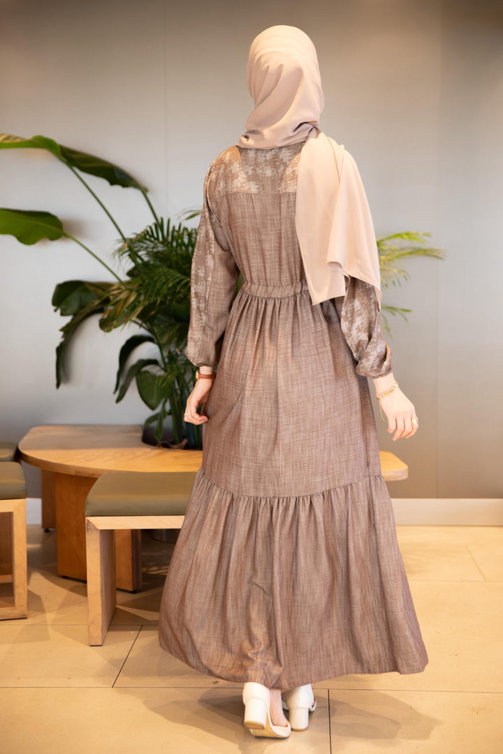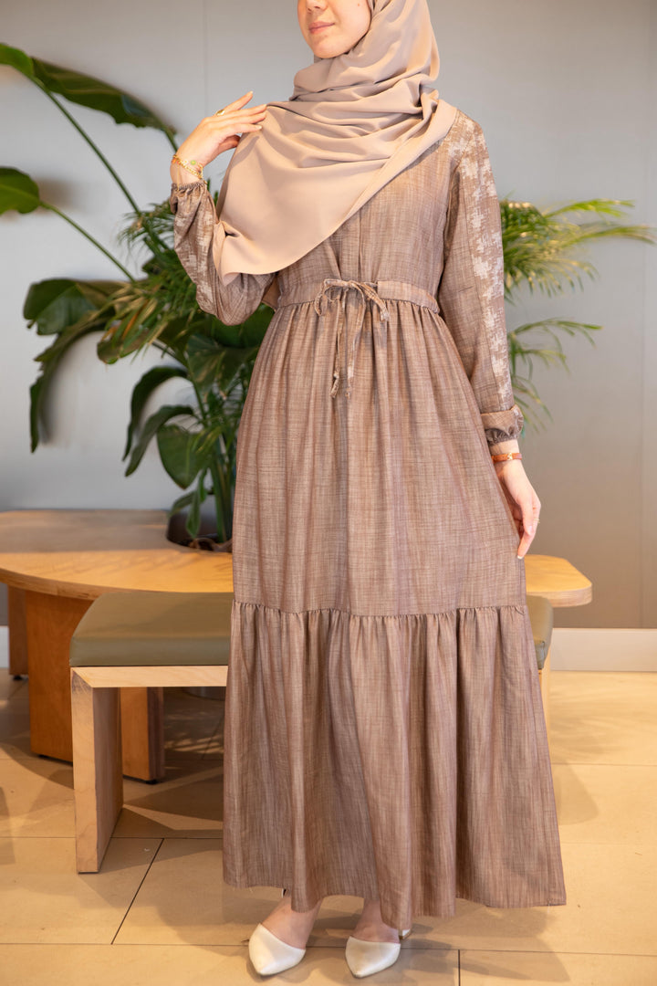 فستان شذى لون بني (خدي مقاس اكبر من مقاسك) (تصفيه لا تبديل ولا ترجيع)
