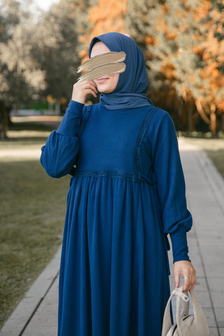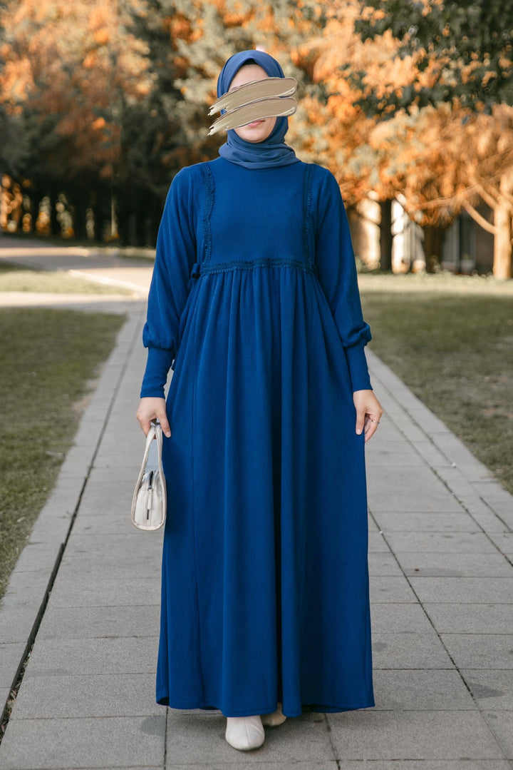 التفاصيل الدقيقة على الصدر وخط الخصر تضيف لمسة أنثوية مرتّبة، مع أكمام واسعة تمنحك راحة وحركة أسهل، وتعطي الفستان طابعًا شتويًا دافئًا ومحتشمًا 👗✨