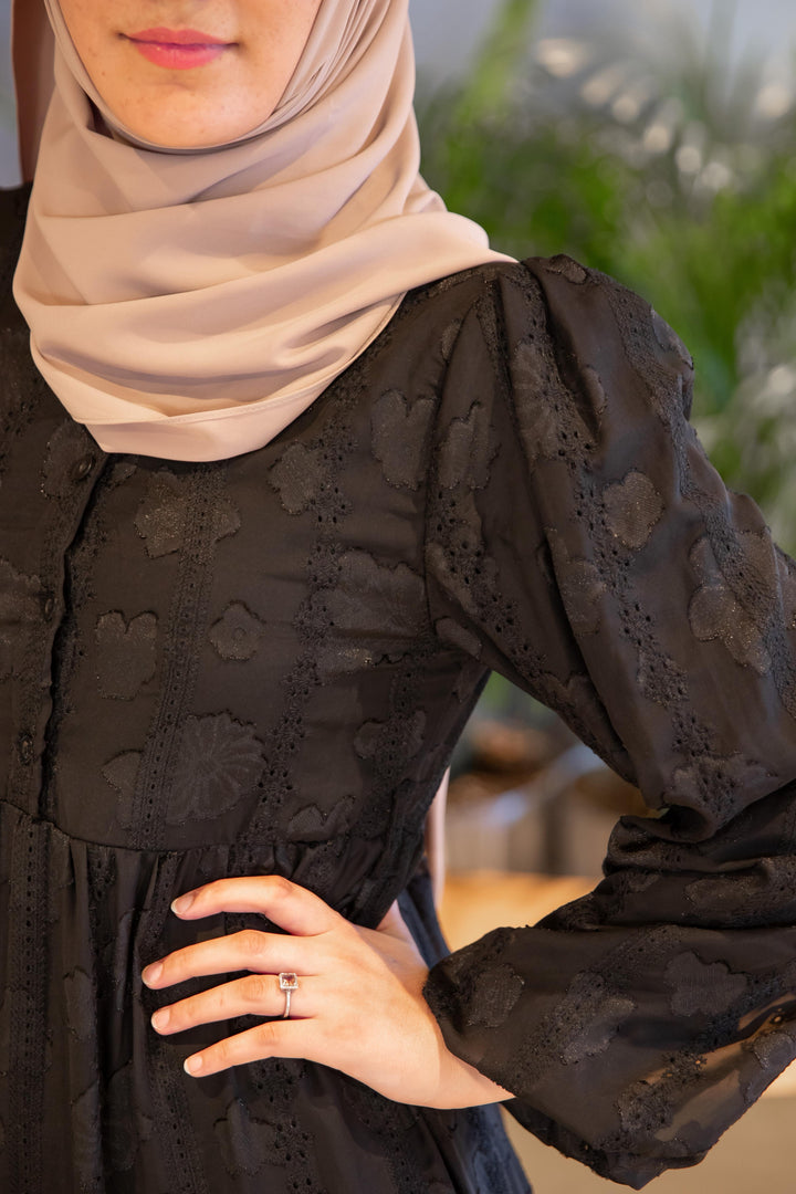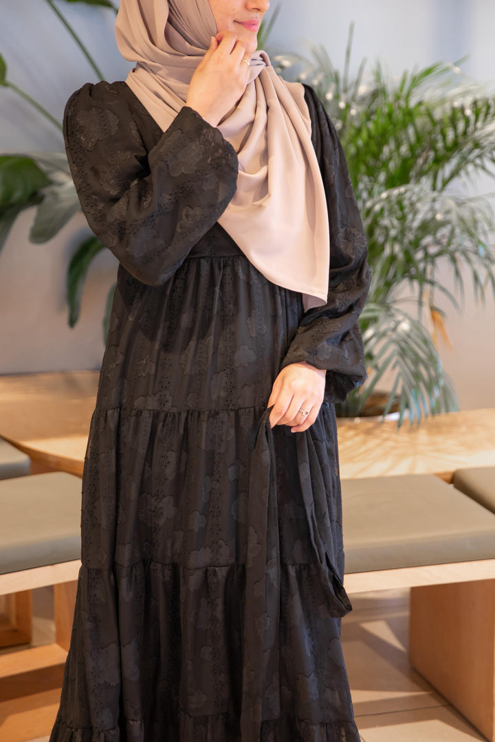 ✨ فستان أنيق بتصميم مطرز ناعم يمنحك إطلالة محتشمة راقية.