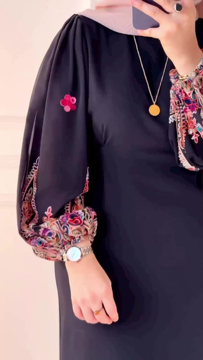 • أكمام ناعمة مطرزة بتطريز راقٍ يضيف لمسة فخمة 🪡