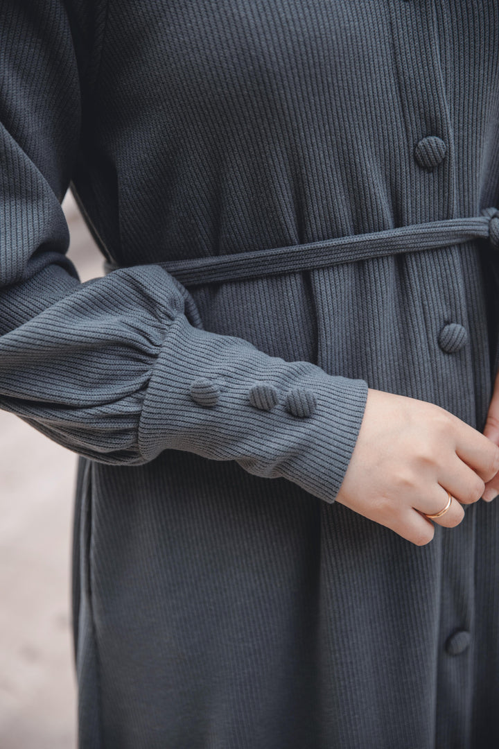 الأزرار القماشية الأمامية تعطي الفستان طابع Classy مع حزام اختياري