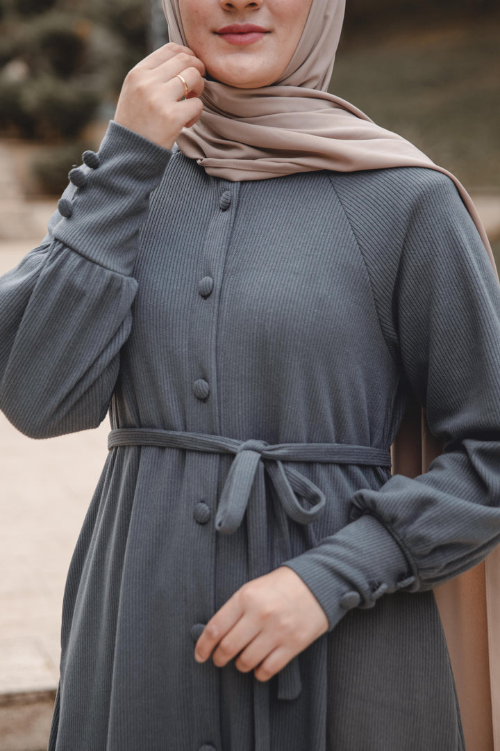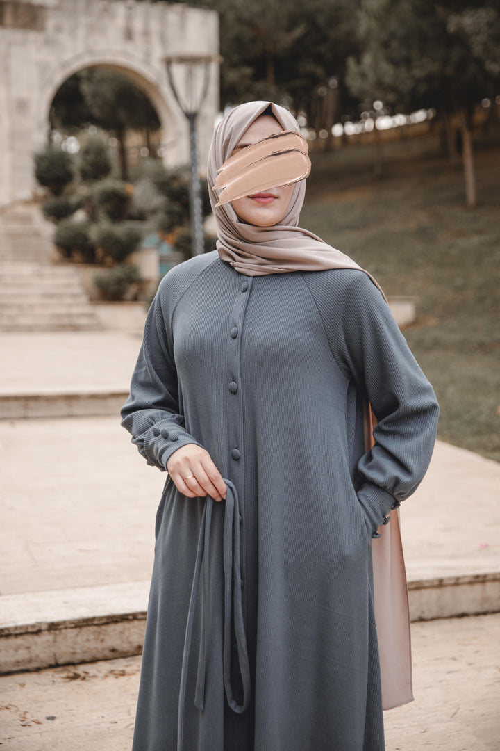 أزرار قماشية كاملة على الطول لستايل راقٍ.