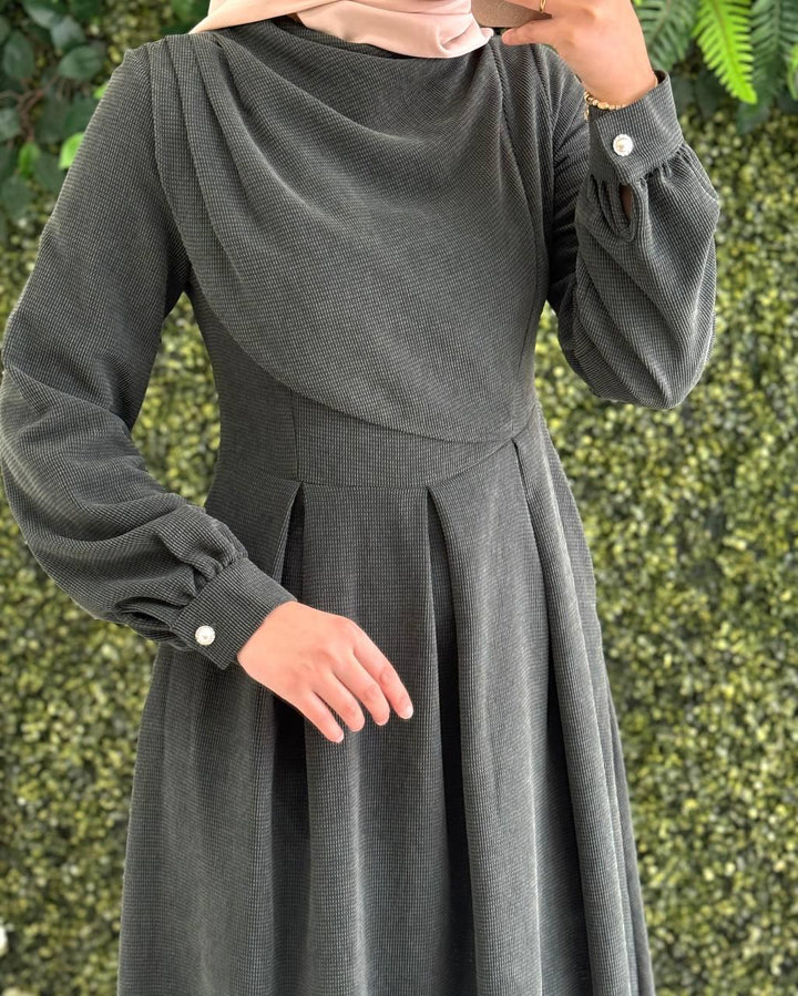 فستان شتوي أنيق بتفاصيل انسيابية مصمّم ليمنحك حضور راقٍ ومحتشم في كل مناسبة.