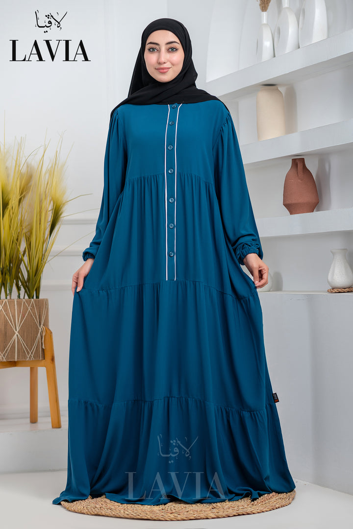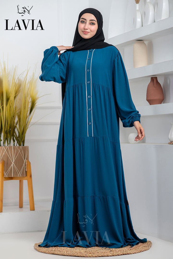 فستان جنة الشرعي من لافيا هو خيار مثالي للباحثات عن الأناقة المحتشمة والراحة العملية في آنٍ واحد. يتميز هذا الفستان بقصة واسعة فضفاضة توفر حرية في الحركة ومظهرًا راقيًا يناسب مختلف المناسبات.