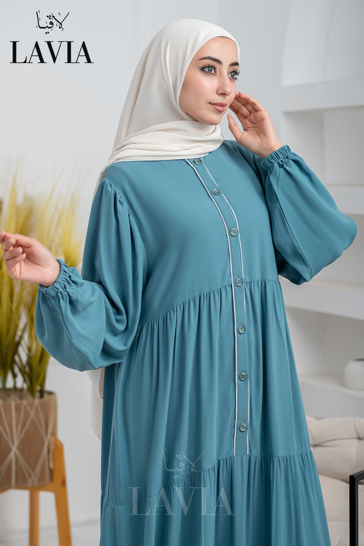 فستان جنة الشرعي من لافيا هو خيار مثالي للباحثات عن الأناقة المحتشمة والراحة العملية في آنٍ واحد. يتميز هذا الفستان بقصة واسعة فضفاضة توفر حرية في الحركة ومظهرًا راقيًا يناسب مختلف المناسبات.